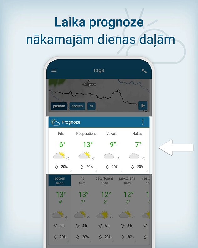 Kā apskatīt šodienas un nākamo dienu laika prognozi, parādīs mūsu foto galerija: